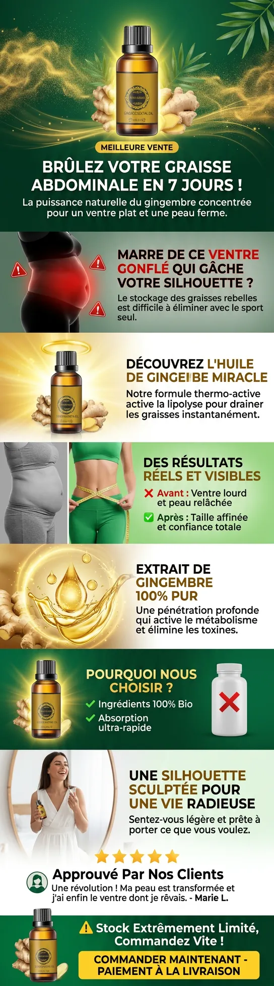 Huile de gingembre, drainage du ventre